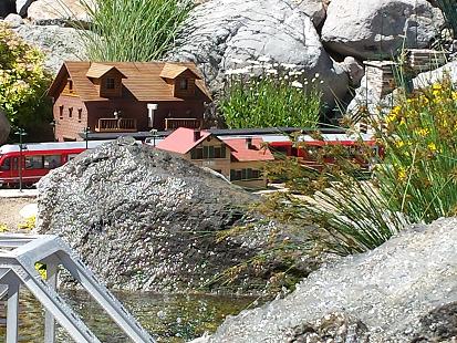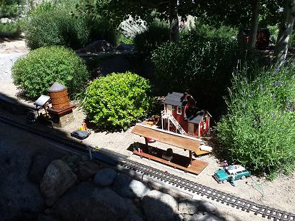 Hawley MacLean has one of the longest garden railroads in Northern Nevada, the Alpine & Western Pacific Railroad. There are over 1,000 feet of track, 10 tunnels, 5 bridges, lakes, and waterfalls. The garden plants are miniature and fit right in with the scale of the train. There is a beautiful staging area for creating the trains and the train travels on tracks right through the house!
