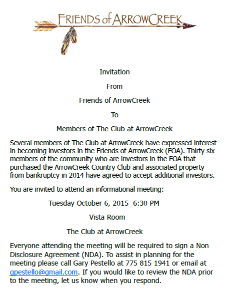 But as back up, they are offering Club members an opportunity to invest in the FOA. I suspect that folks, who gladly ponied up $240 a month for unlimited golf, might balk at forking over $10K or more to invest in a no growth business.