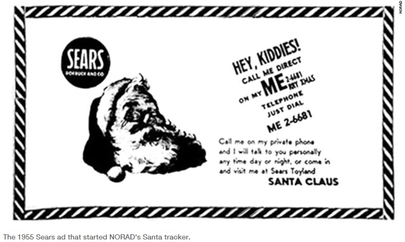 60 years ago, a local Sears store in Colorado Springs ran a dial Santa ad. Except the number was a misprint. Instead of listing the number for Sears’ Santa hotline, it posted the number for the Continental Air Defense Command center.