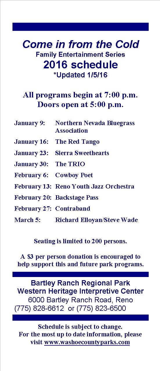 The Come in from the Cold Family Entertainment Series is one of the longest running programs in Washoe County.