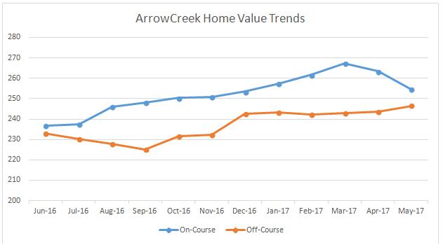 1. ArrowCreek properties have stayed in the premium class within Washoe and Douglas Counties. As you read this report you will see that prices have improved for properties on the golf course, with an average appreciation rate of 7.5% over this past year, while prices for homes not on the golf course have also trended upward with an increase of 5.7% over the same period, with the ‘hottest’ neighborhood being Sundance (both on and off course properties exceed the Kiplinger number of 6% and are more ‘in-line’ with west coast home value growth).