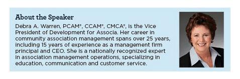 This is your chance to learn from an expert with over 25 years of experience in the community association industry. Limited space is available. Register now!