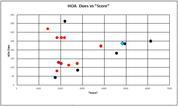 A critic of the handling of the raw data might take issue with using “Recent Price” (asking price) rather than selling price.  The only effect of that change would be to move all “Score” values slightly lower.  It would not affect the relative positions of the Developments.