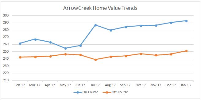 1. ArrowCreek properties have stayed in the premium class within Washoe and Douglas Counties. As you read this report you will see that prices have improved for properties on the golf course, with an average appreciation rate of 11.9% over this past year, while prices for homes not on the golf course have increased to 3.6% over the same period. With seven properties in seven different neighborhoods changing hands this past month, no one neighborhood could be singled out.